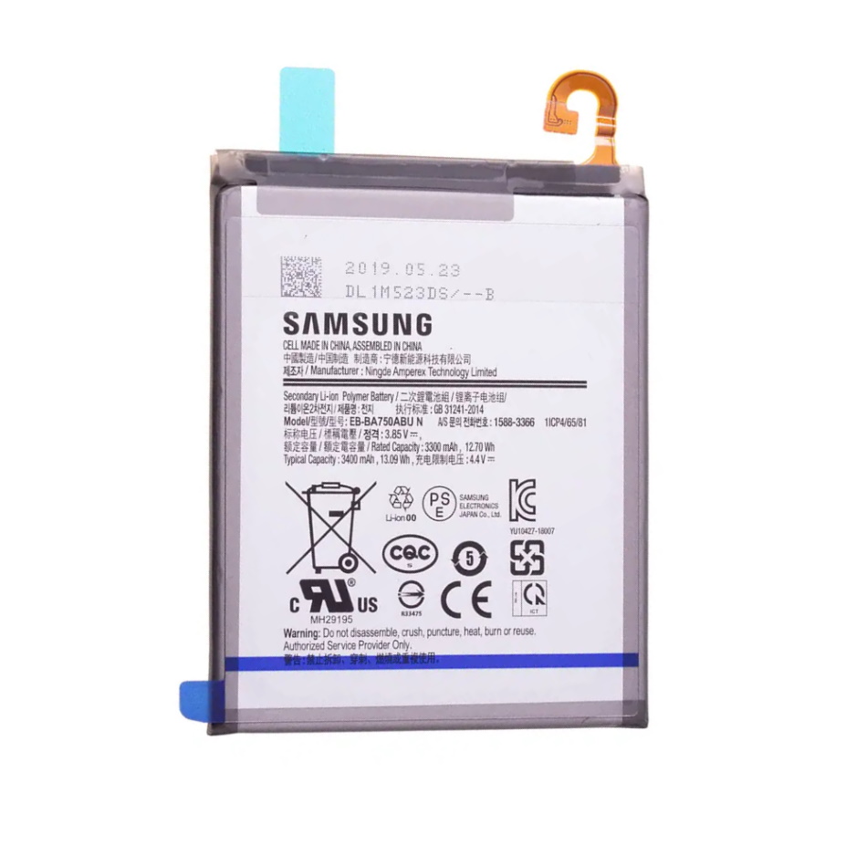 Model: EB-BA750ABU Kapaciteta: 3300mAh Napetost: 3,85V Tip: Li-Po Garancija: 6 mesecev (s potrdilom o zamenjavi v za to pooblaščenem servisu) Kompatibilni telefoni: Samsung A750 Galaxy A7 (2018)/A10 (A105)/M10 (M105)